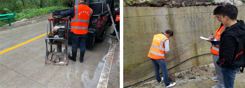 2、路面工程:路面厚度采用鉆孔取芯機(jī)取樣鋼直尺量測(cè),平整度用三米直尺按車(chē)道連續(xù)檢測(cè)。