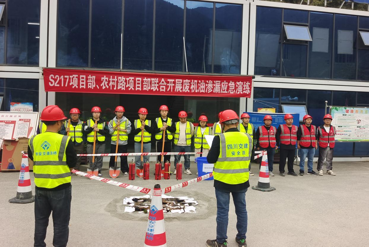 為提高項目管理人員與勞務人員應對廢機油滲漏突發(fā)事件的能力,10月25日,雅安交建集團路橋公司S217石棉縣王崗坪至石棉縣城段災后恢復重建工程項目部、“9.5”瀘定地震石棉縣受損農村公路災后恢復重建工程項目部、石棉縣農村公路改造提升工程項目部,聯(lián)合開展環(huán)保廢機油處置應急演練。