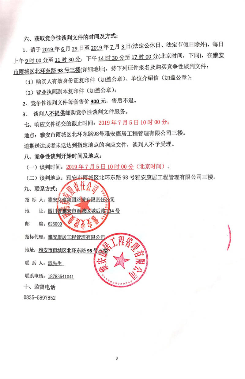雅安交建集團路橋有限責(zé)任公司國道351線磽磧至夾金山路面改造工程防裂卷材采購競爭性談判公告