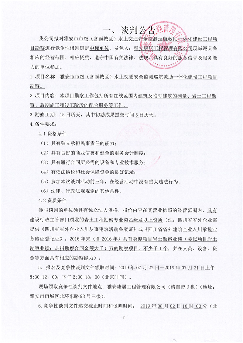 雅安市市級(jí)(含雨城區(qū))水上交通安全監(jiān)測(cè)巡航救助一體化建設(shè)工程項(xiàng)目勘察