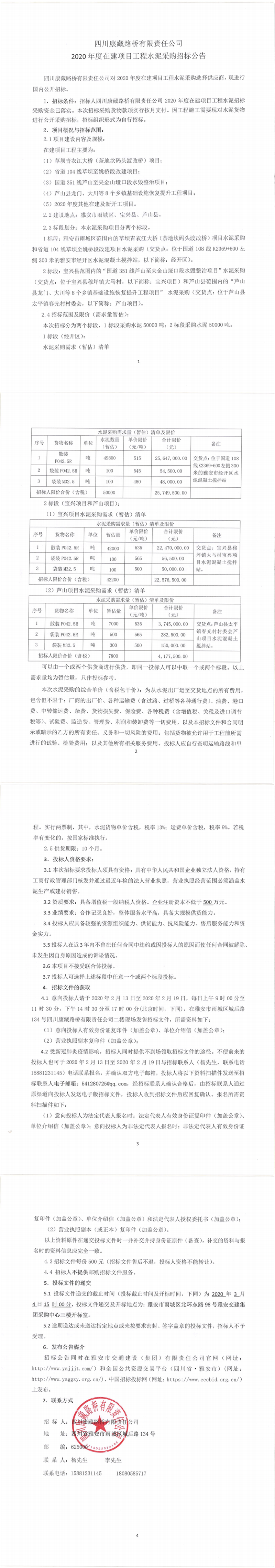 四川康藏路橋有限責(zé)任公司2020年度在建項(xiàng)目工程水泥采購招標(biāo)公告