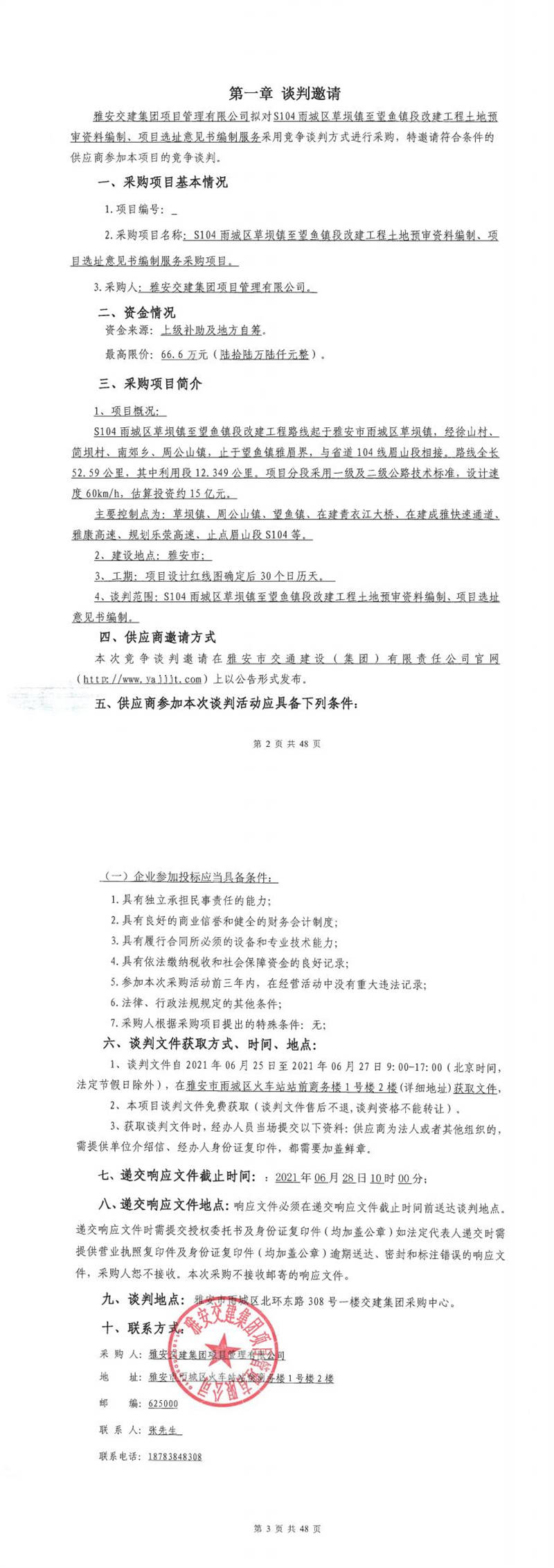 雅安交建集團(tuán)項(xiàng)目管理有限公司S104雨城區(qū)草壩鎮(zhèn)至望魚鎮(zhèn)段改建工程行洪論證與河勢穩(wěn)定評價(jià)報(bào)告編制服務(wù)采購項(xiàng)目競爭談判公告