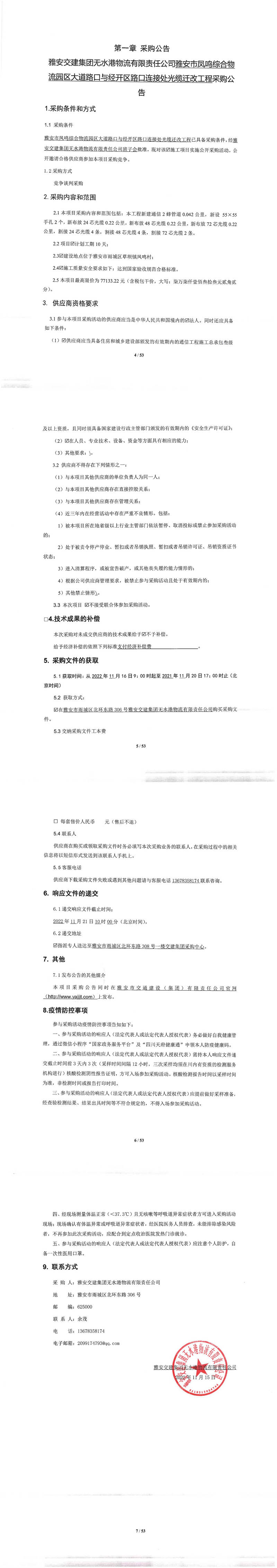 雅安交建集團無水港物流有限責(zé)任公司雅安市鳳鳴綜合物流園區(qū)大道路口與經(jīng)開區(qū)路口連接處光纜遷改工程采購公告