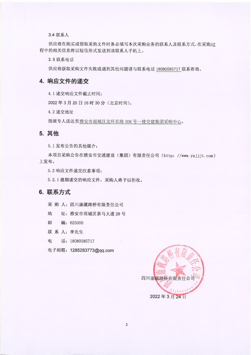 四川康藏路橋有限責(zé)任公司國道318名山區(qū)黑竹(成都界)至雨城區(qū)多營段改建工程雨城籌建段灑水車租賃項(xiàng)目競價(jià)公告