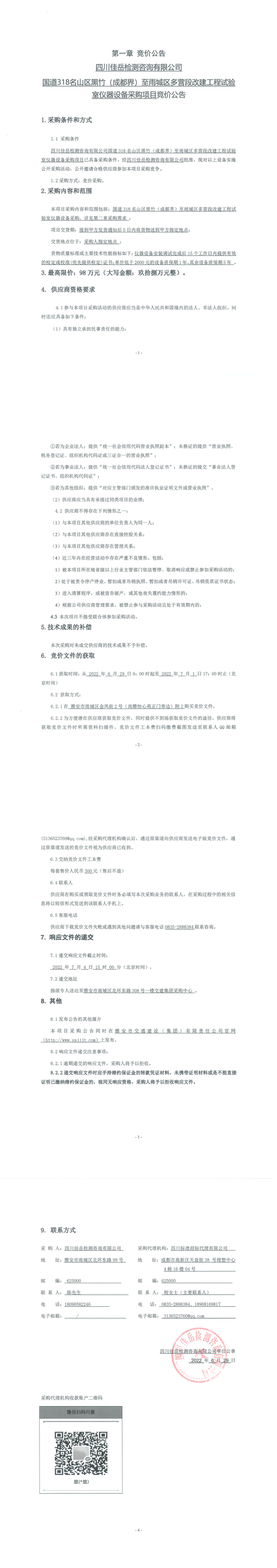 四川佳岳檢測(cè)咨詢有限公司國道318名山區(qū)黑竹(成都界)至雨城區(qū)多營段改建工程試驗(yàn)室儀器設(shè)備采購項(xiàng)目競價(jià)公告