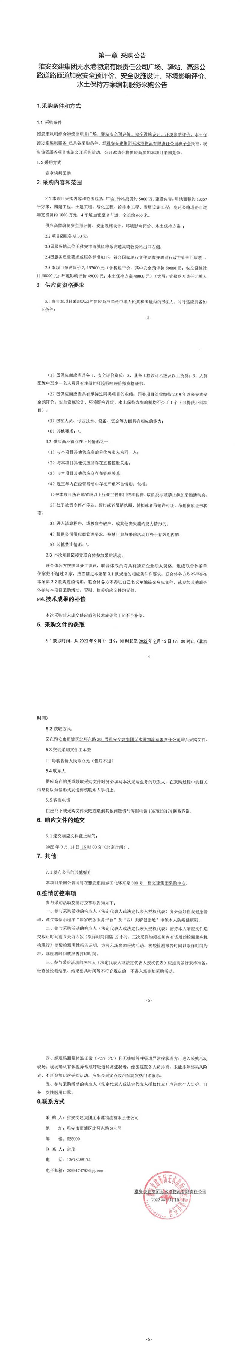 雅安交建集團無水港物流有限責任公司廣場、驛站、高速公路道路匝道加寬安全預(yù)評價、安全設(shè)施設(shè)計、環(huán)境影響評價、水土保持方案編制服務(wù)采購公告
