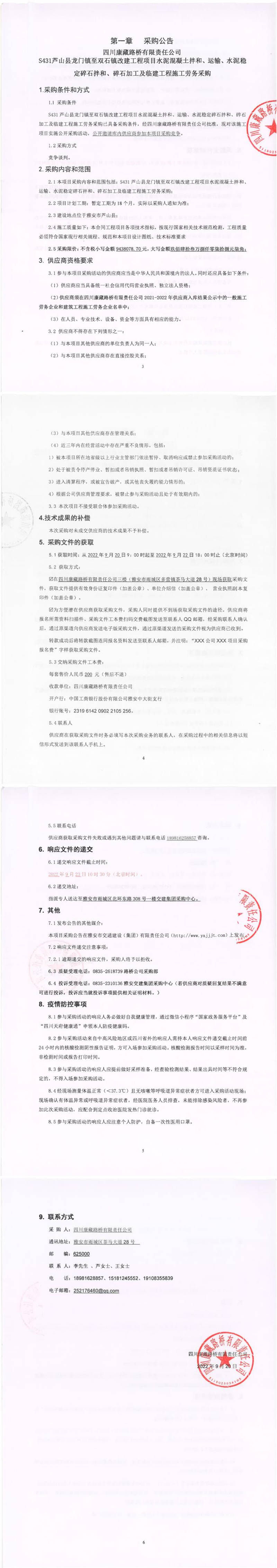 四川康藏路橋有限責(zé)任公司S431蘆山縣龍門鎮(zhèn)至雙石鎮(zhèn)改建工程項(xiàng)目水泥混凝土拌和、運(yùn)輸、水泥穩(wěn)定碎石拌和、碎石加工及臨建工程施工勞務(wù)采購公告