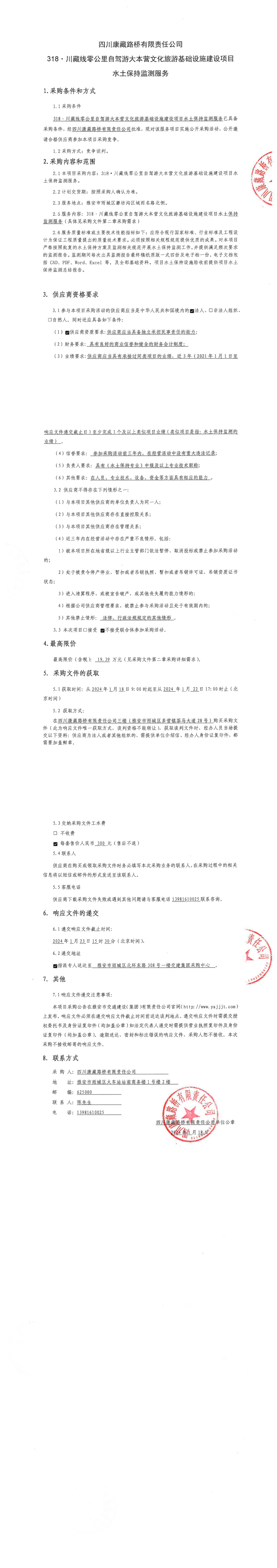 四川康藏路橋有限責(zé)任公司318·川藏線零公里自駕游大本營文化旅游基礎(chǔ)設(shè)施建設(shè)項(xiàng)目水土保持監(jiān)測(cè)服務(wù)采購公告